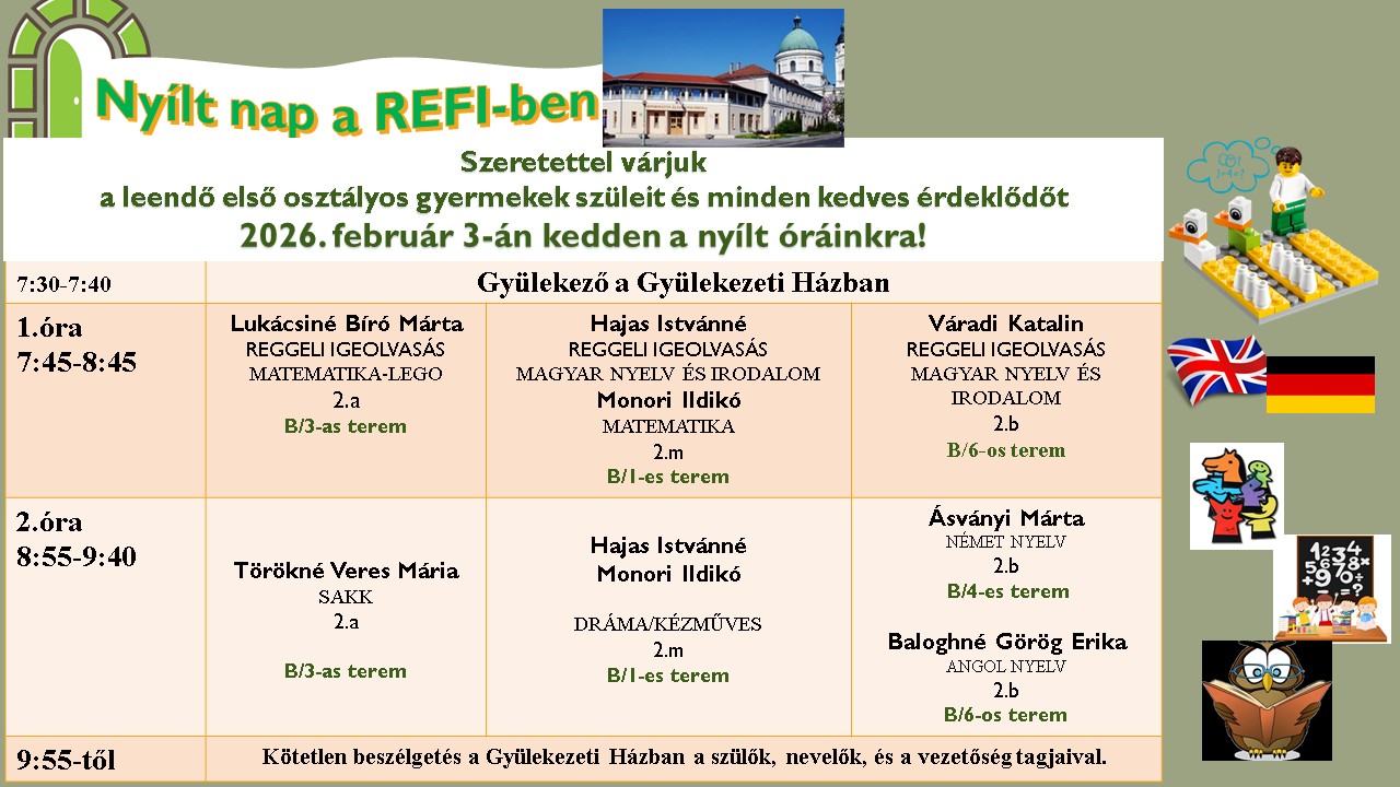 Ceglédi iskola Nyílt nap a REFI-ben 2026.01.19. 2026.01.19. Nyílt nap a REFI-ben Suliváró Szülői értekezlet